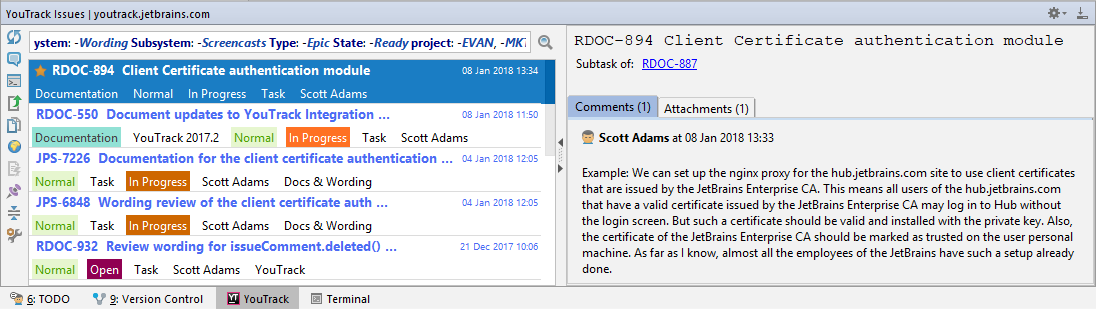 View Issues in the YouTrack Tool Window