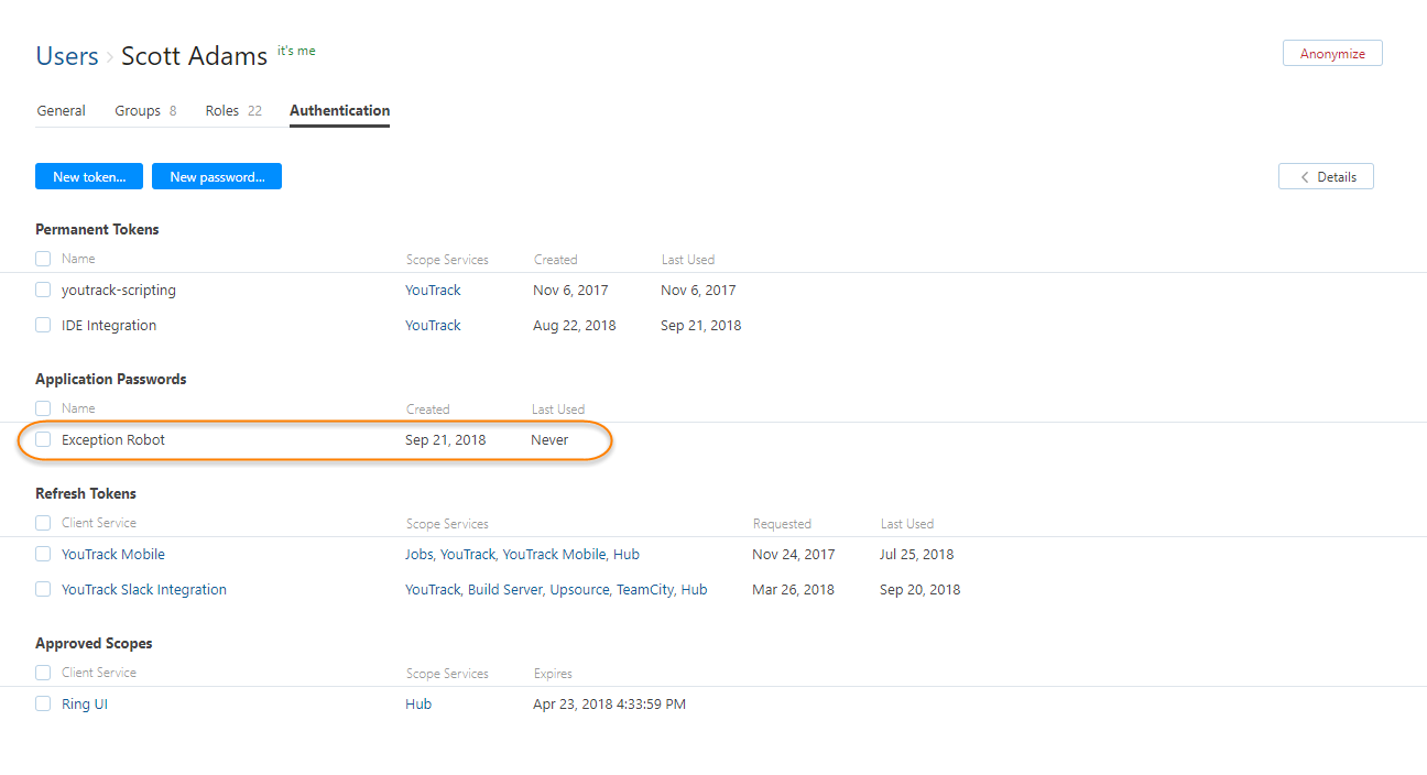 You have external applications that use your Hub account to authorize actions in a connected service. For example, a test management tool that reports issues in YouTrack when it encounters an exception.