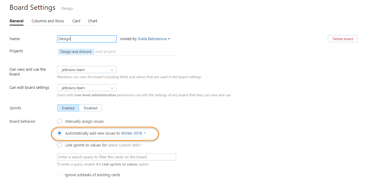 This means the team can make their board visible to other teams at JetBrains, but they have full control over who takes each assignment.