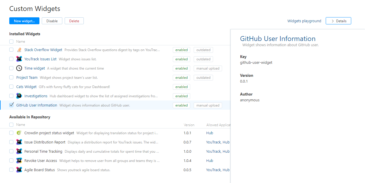 The final and optional step is to share your widget with other companies who are working with YouTrack by uploading your widget to the JetBrains Plugins Repository.