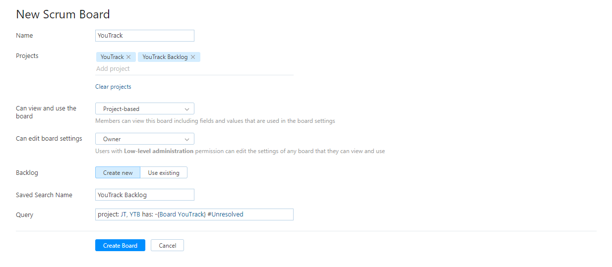 Excludes issues that are already assigned to a sprint on the board (has: -{Board YouTrack})