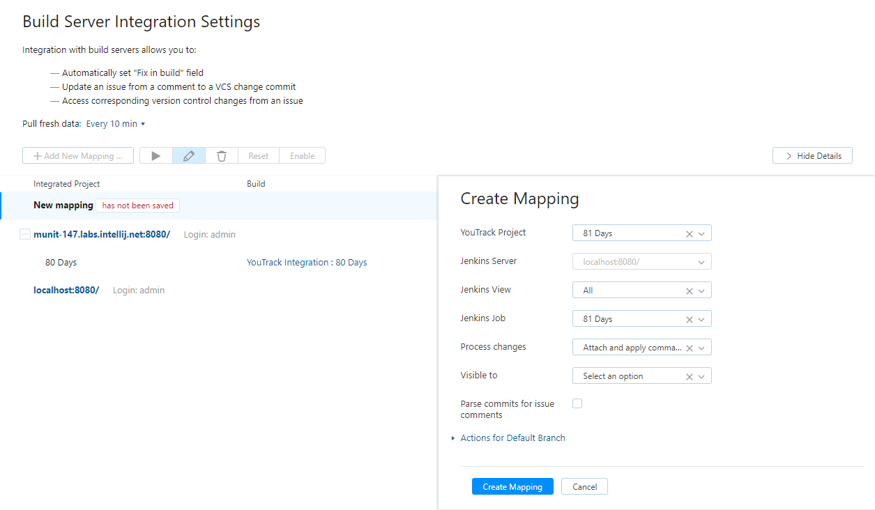 To define a mapping between YouTrack and Jenkins: