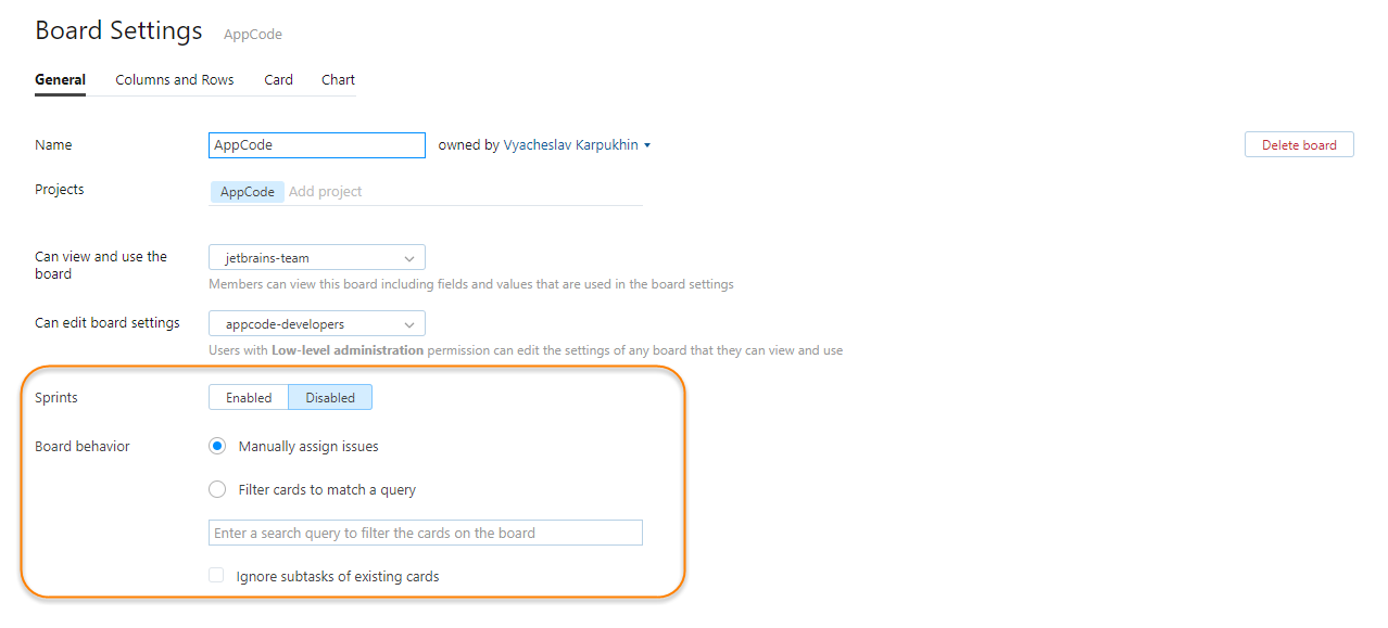 Here's what the AppCode Kanban board looks like in our YouTrack installation:
