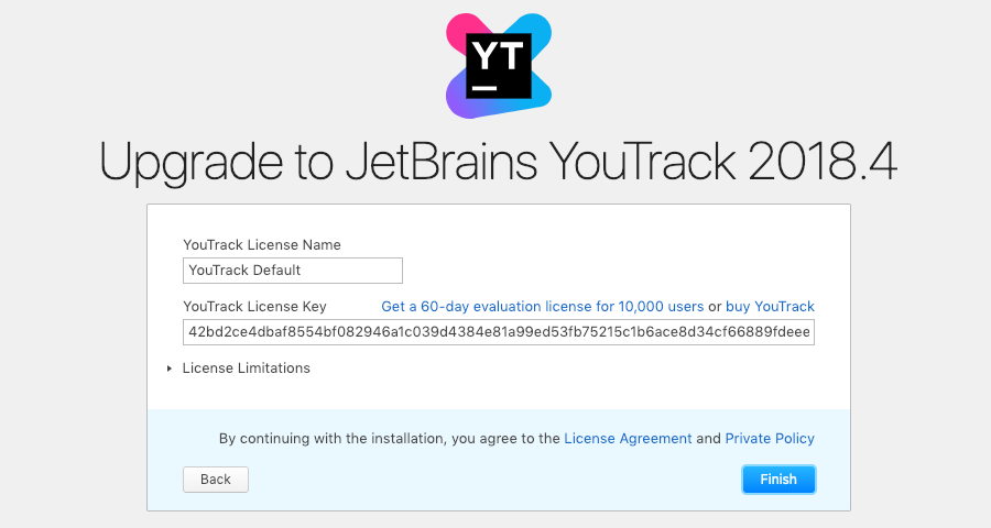 Your YouTrack Standalone installation is upgraded and ready to use.