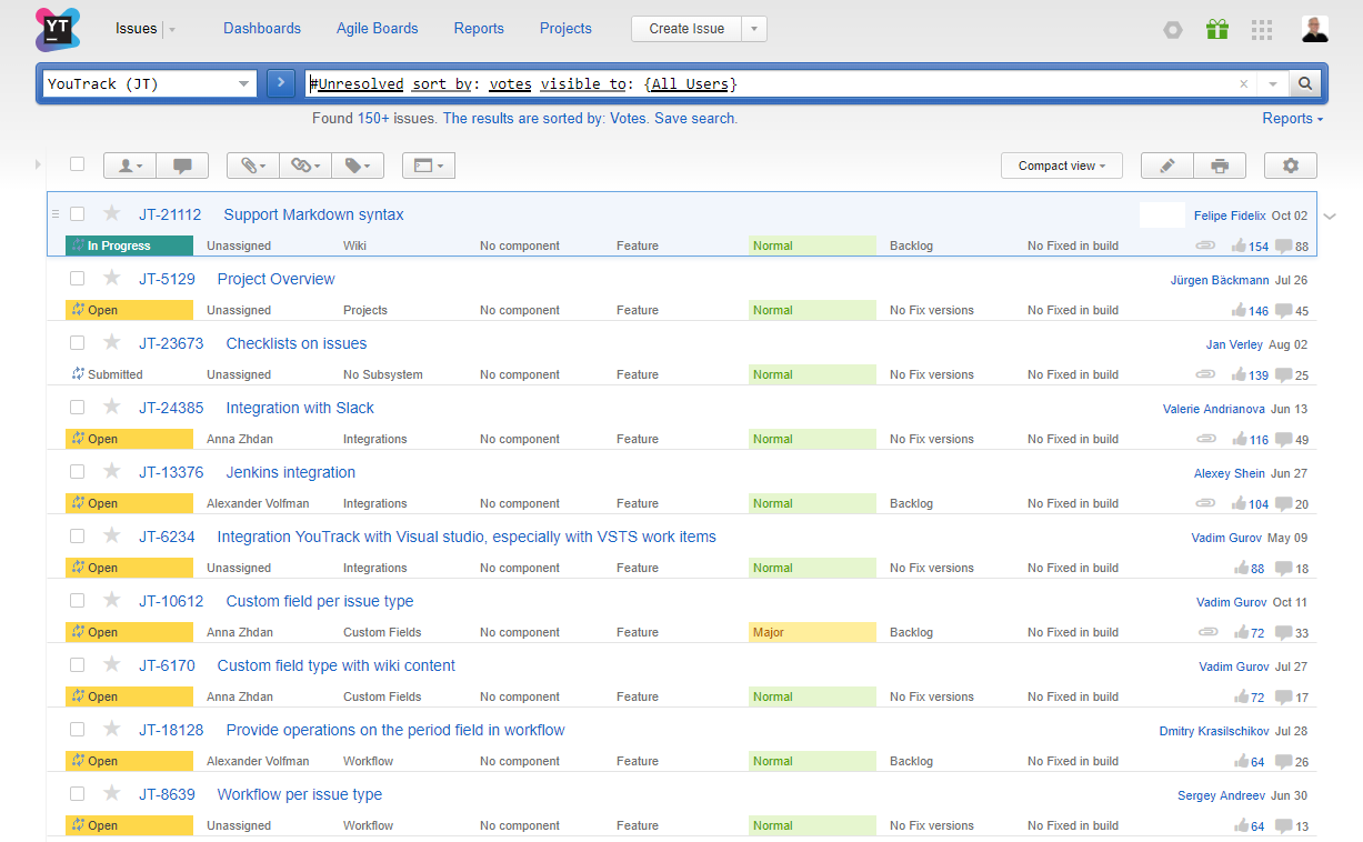 Votes are one way to measure the popularity of an issue. When you add a vote to an issue, you express your personal support.