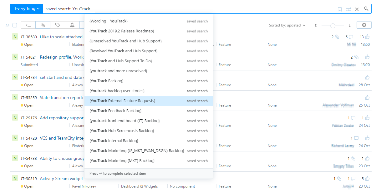 Adding a saved search to YouTrack lets you quickly display a list of issues that currently match the predefined search criteria.