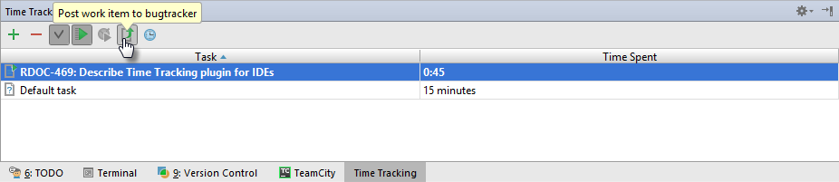 The Time Tracking plugin tracks the amount of time spent working on active tasks in your IDE. When your IDE is connected to a YouTrack server, you can add the spent time to a work item for the issue that is associated with an active task.