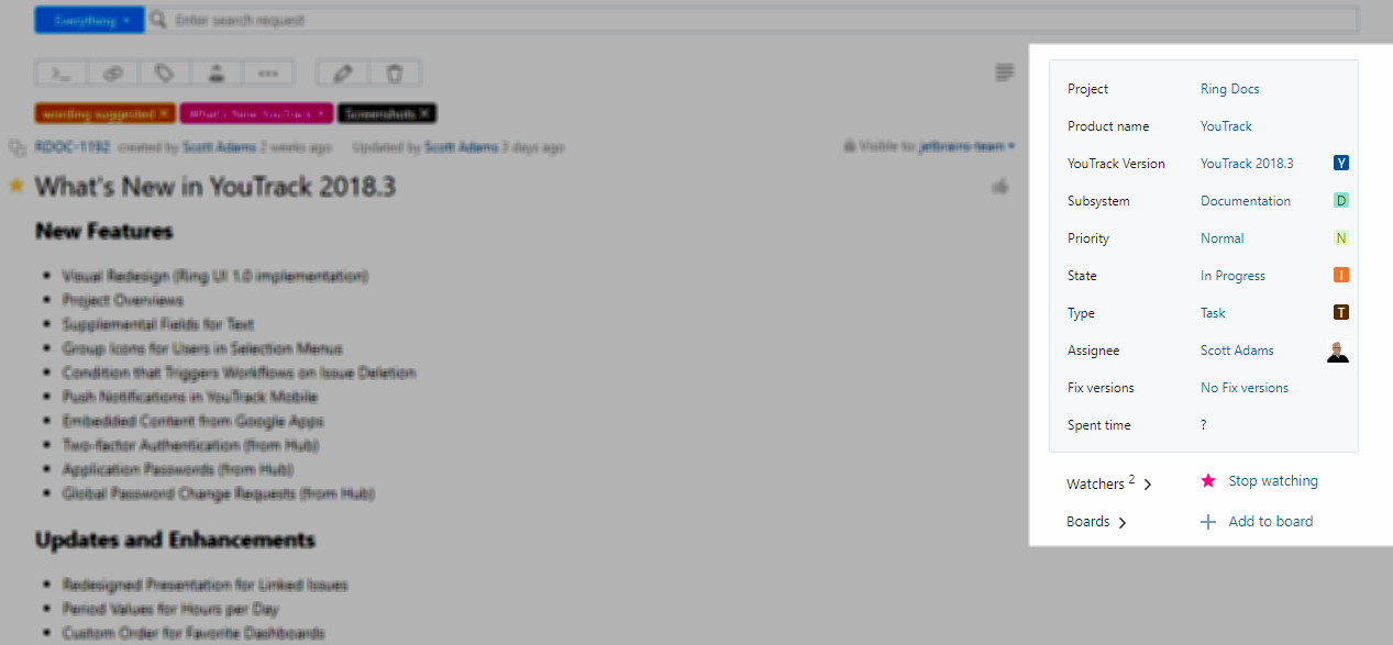 Otherwise, working with supplemental text fields is just like any other custom field in YouTrack.