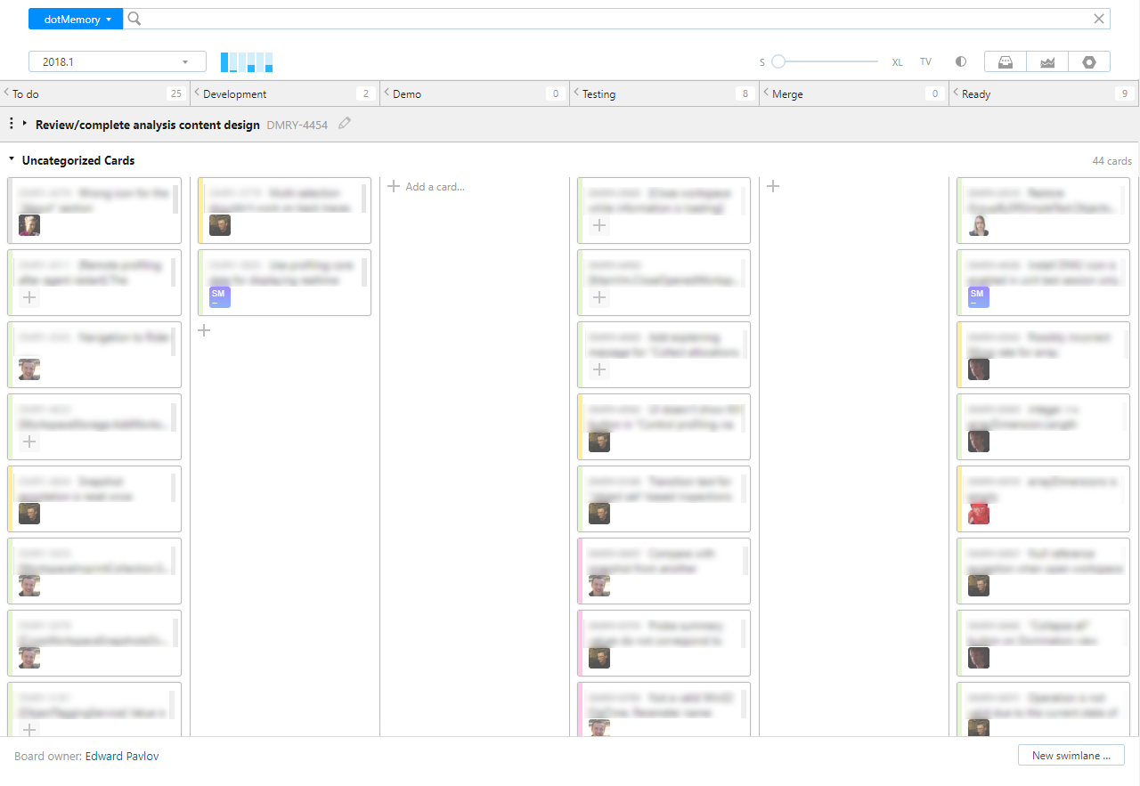 One of the early adopters was the dotMemory team. Here's what their board looks like in our YouTrack installation: