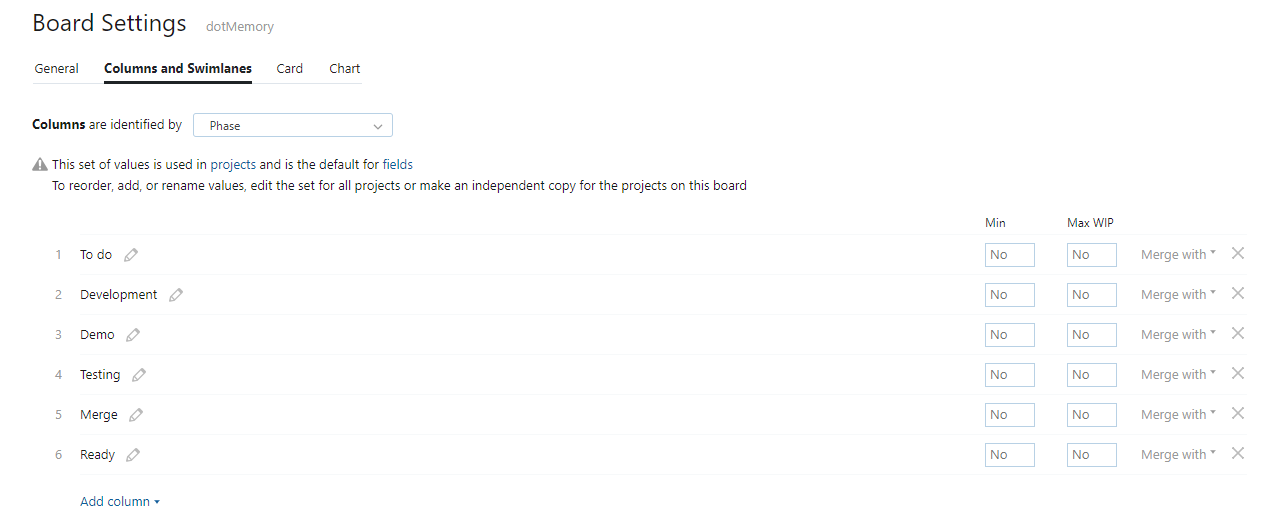 You’ll notice right away that your board has configuration errors. To fix it, switch to the Columns and Swimlanes tab and choose a field to identify your columns. The most common configuration is to use the State field.