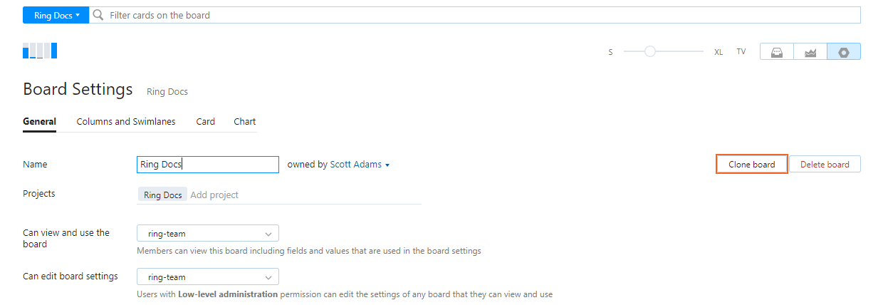 The Clone operation lets you create a new agile board without having to configure it from scratch. Once you have cloned an agile board, you can edit the settings for the cloned board independently from the original board.
