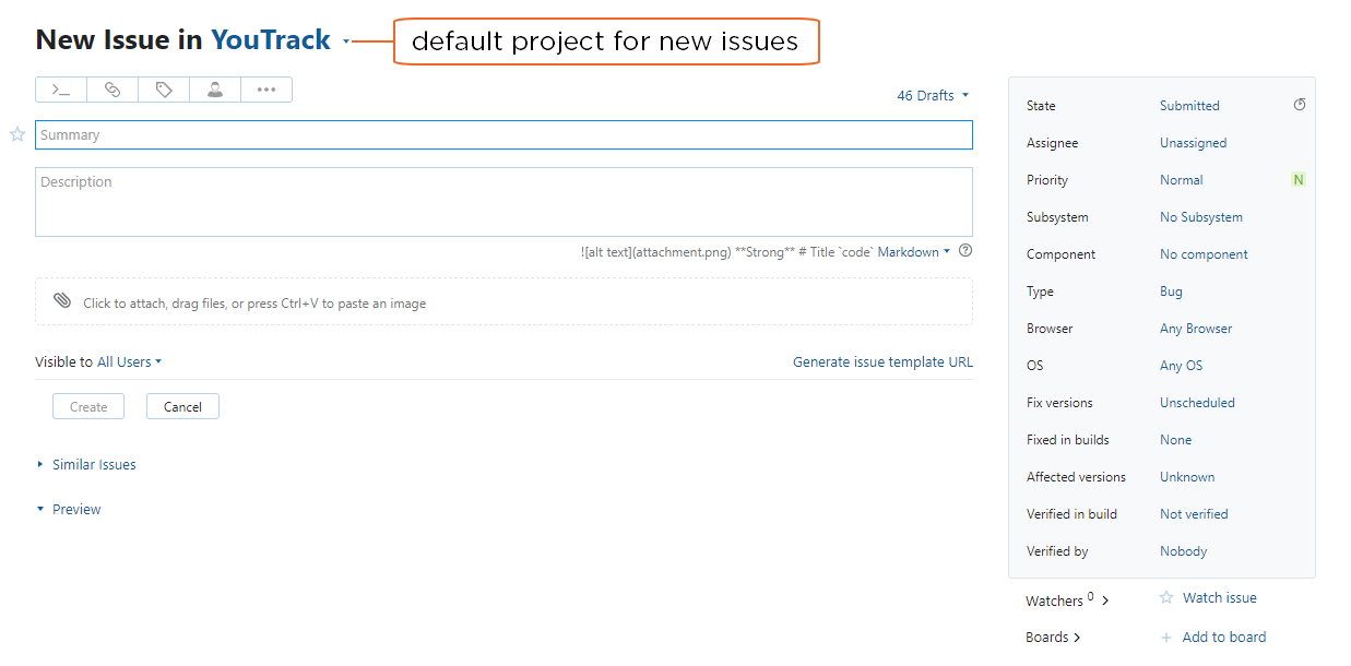 When you set the search context to a project, your search queries are restricted to issues in the selected project. As long as you are using a project for the search context, this project is set as the default value for the Project field in new issues.