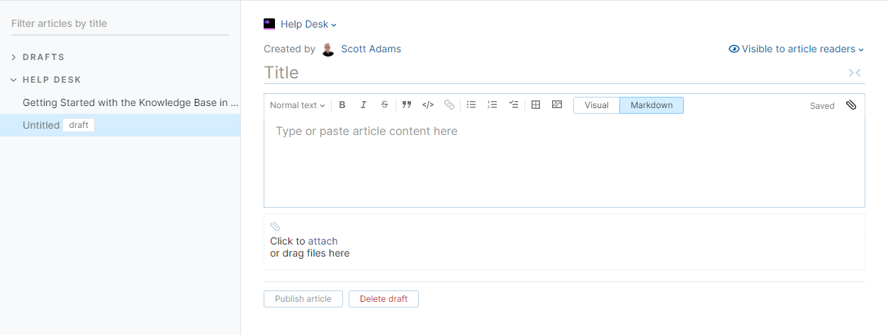 To learn how to attach and embed content, see Attach Files to Articles and Embed Content in Articles