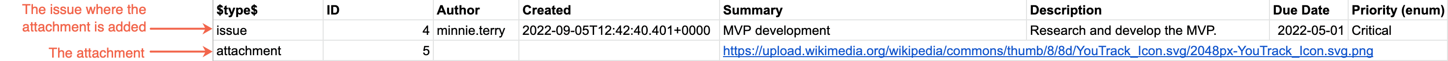 attachmentIn the Summary column, YouTrack expects a link to a file. This file will be added to the issue above as an attachment.