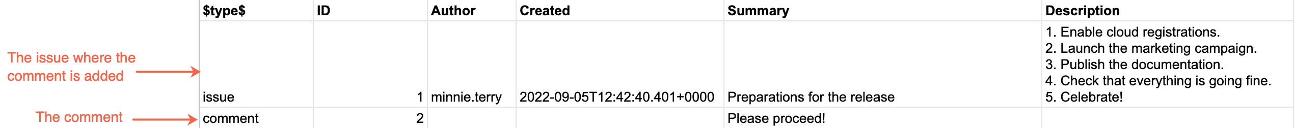 commentYouTrack converts the Summary column contents into the text of the comment. This comment will be added to the issue above.