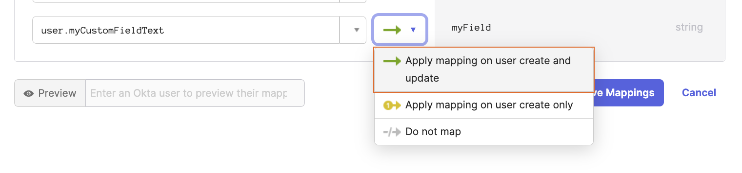 Instead, you only see mapping settings for custom attributes that have been added to user profiles in Hub. Each custom attribute is listed by name with an input field for storing the name of corresponding field in the authorization service. To learn more about custom attributes in user profiles, see Manage Custom Attributes.