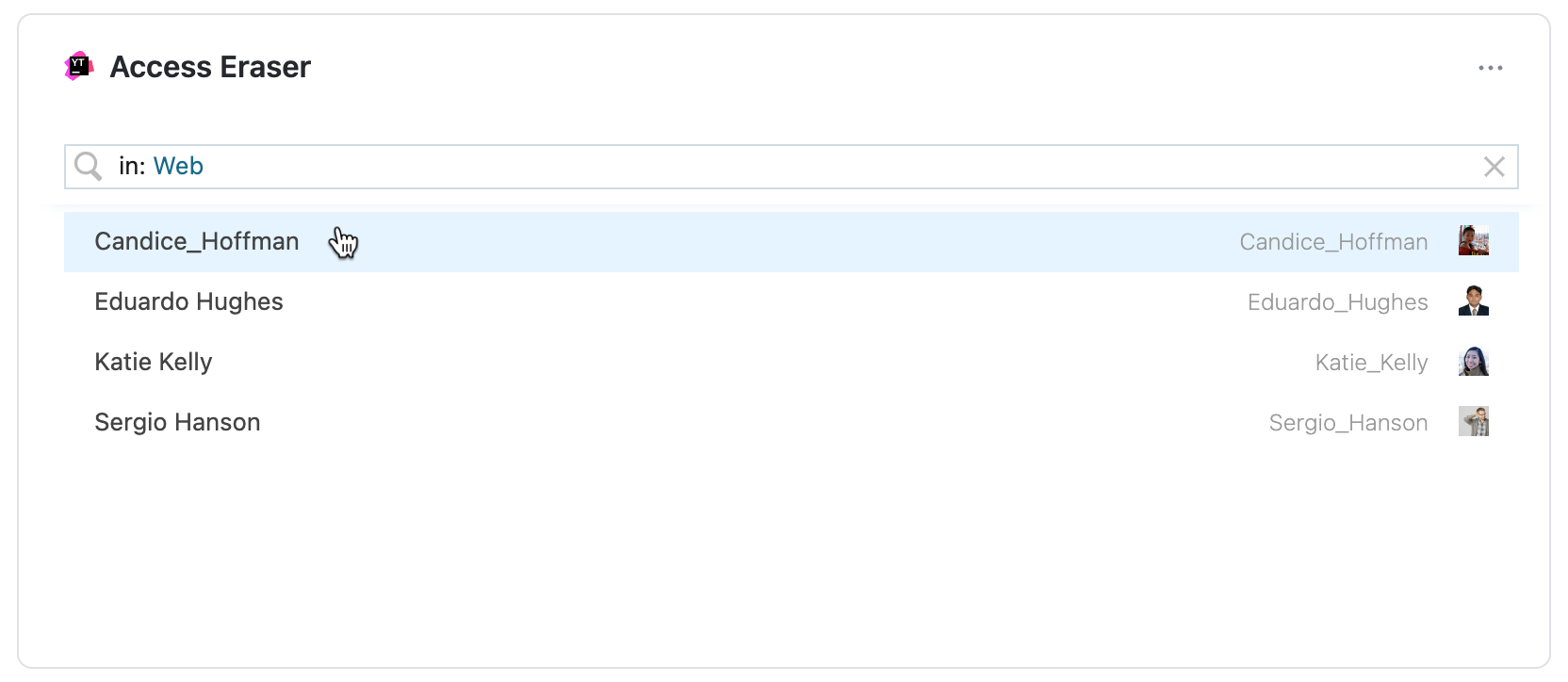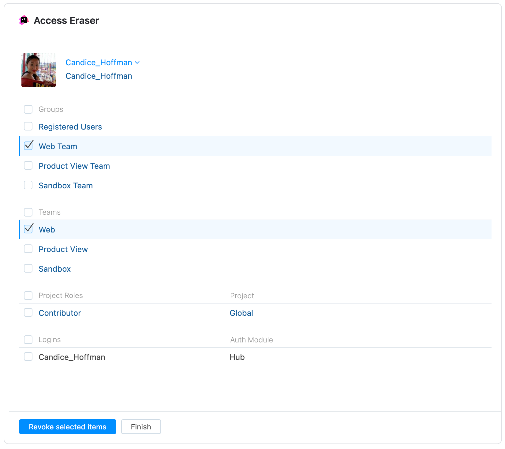 After the Access Eraser widget has been configured and the permission changes have been saved, the user access is immediately updated.