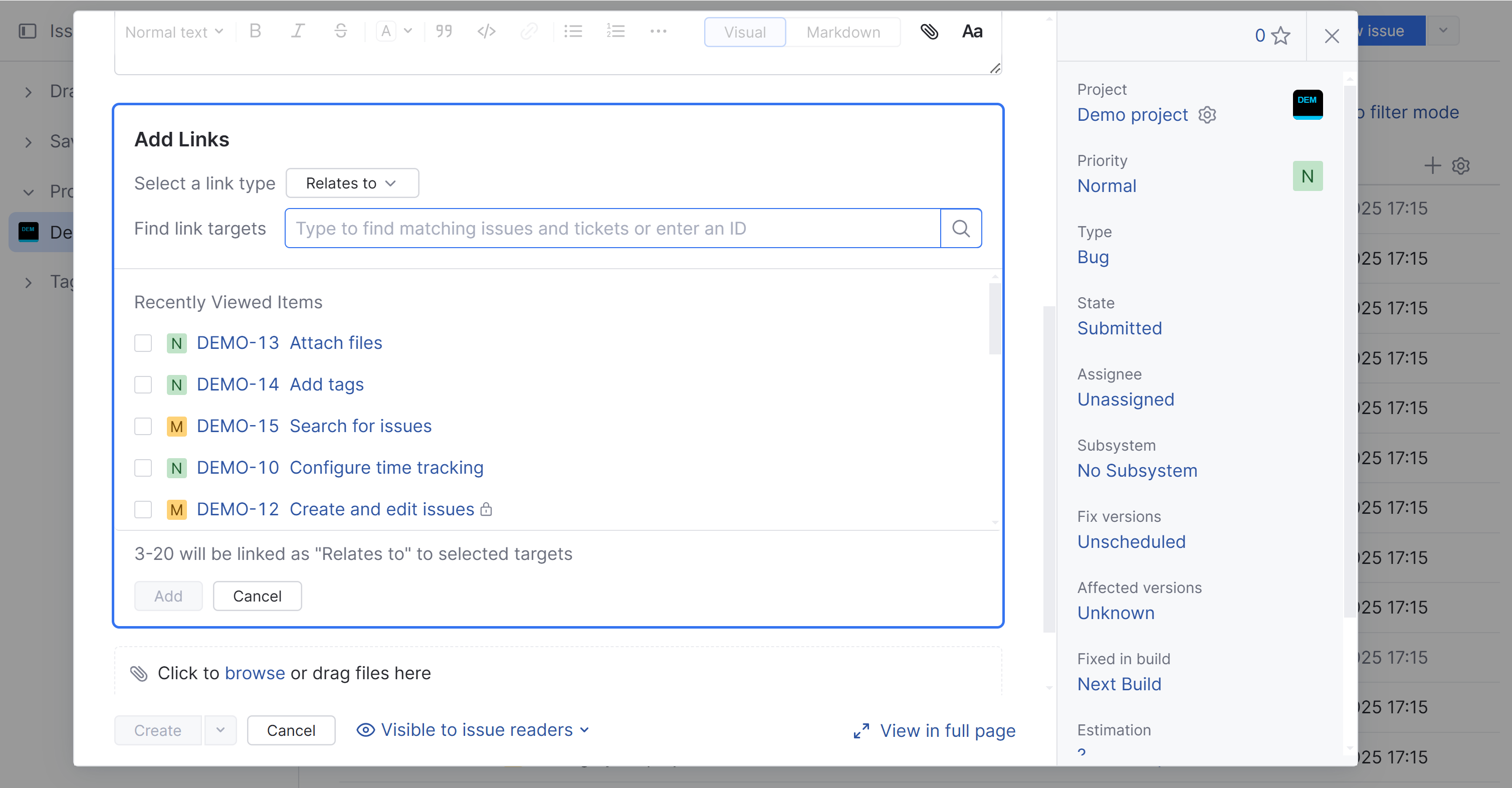 To learn more about formatting text in YouTrack, see Rich Text Editor.