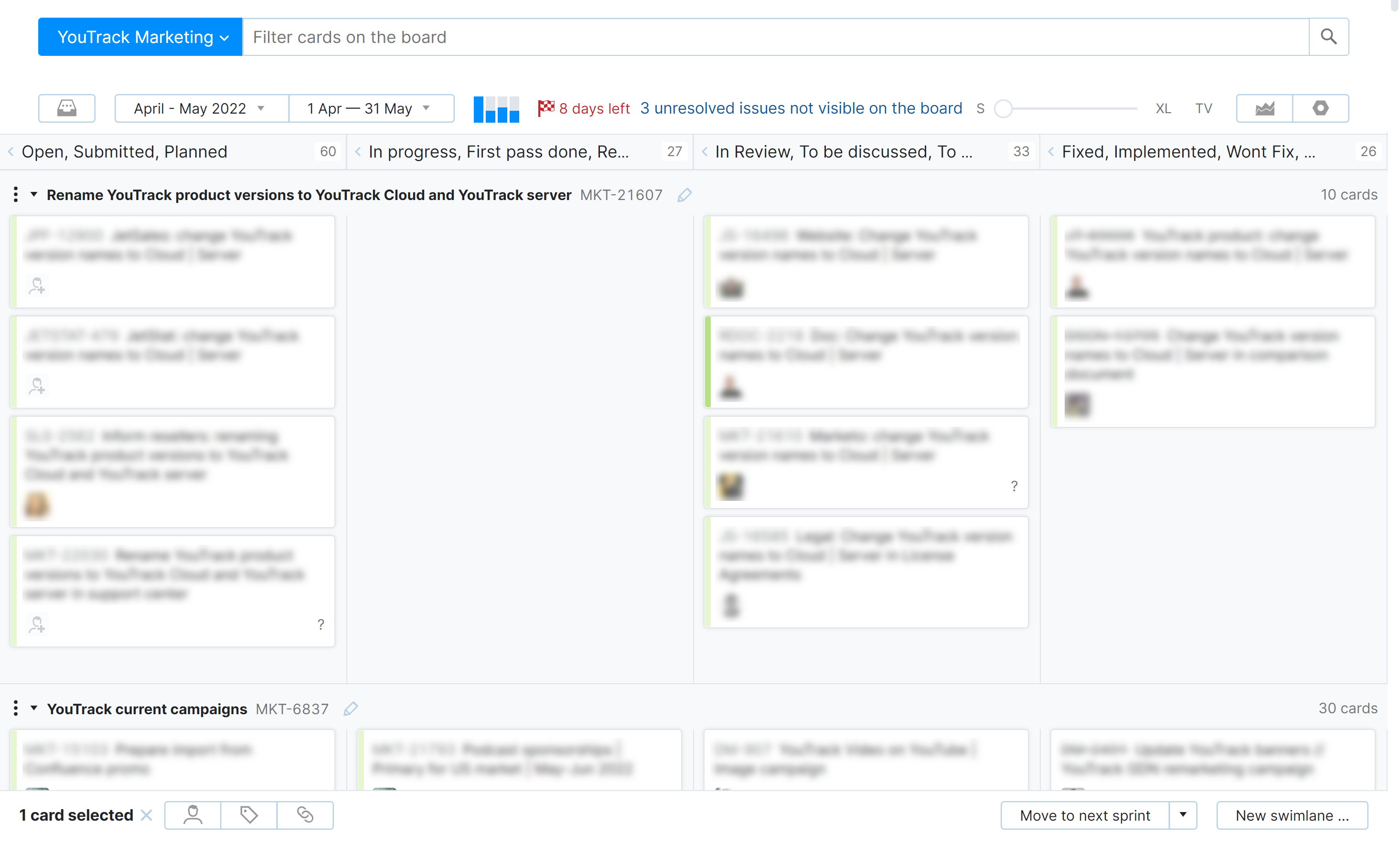 Managing issues in multiple projects can be tricky, especially when each project team follows its own working process. The marketing managers for YouTrack and Hub use an agile board to resolve these inconsistencies.