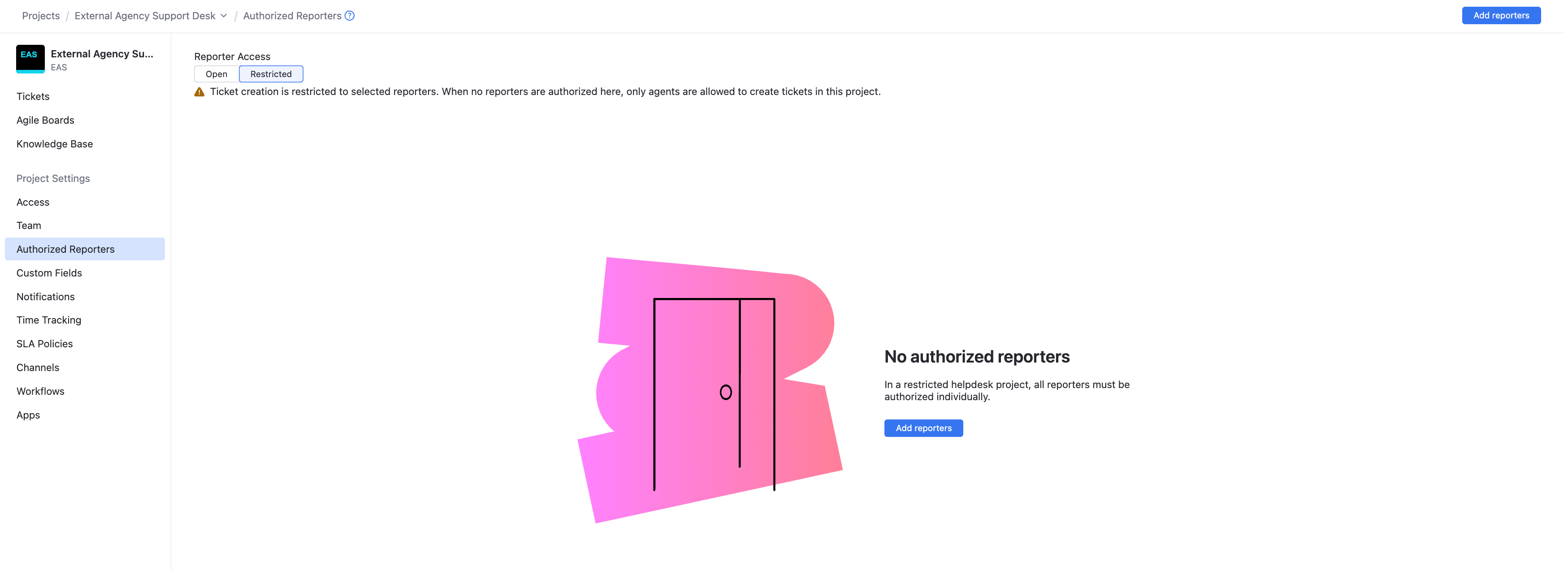 Add reporter access to a restricted helpdesk project.