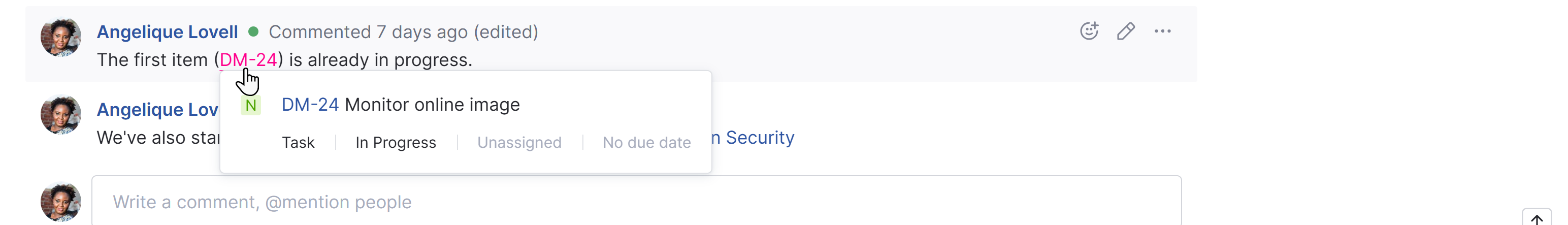 Issue summaries in hyperlinks | In an earlier version of YouTrack, we replaced references to issue IDs in issue descriptions and comments with the issue summary. ![]() This feature was met with mixed reactions, which prompted us to revert this change for users working with YouTrack Classic. To maintain consistency across the application, we decided to revert this change for everyone. References to issue IDs that are transformed into links now use the issue ID as the link text. The issue summary and current values for key custom fields are shown as a tooltip. ![]() Links to articles in the knowledge base continue to use the article title as the link text. |
