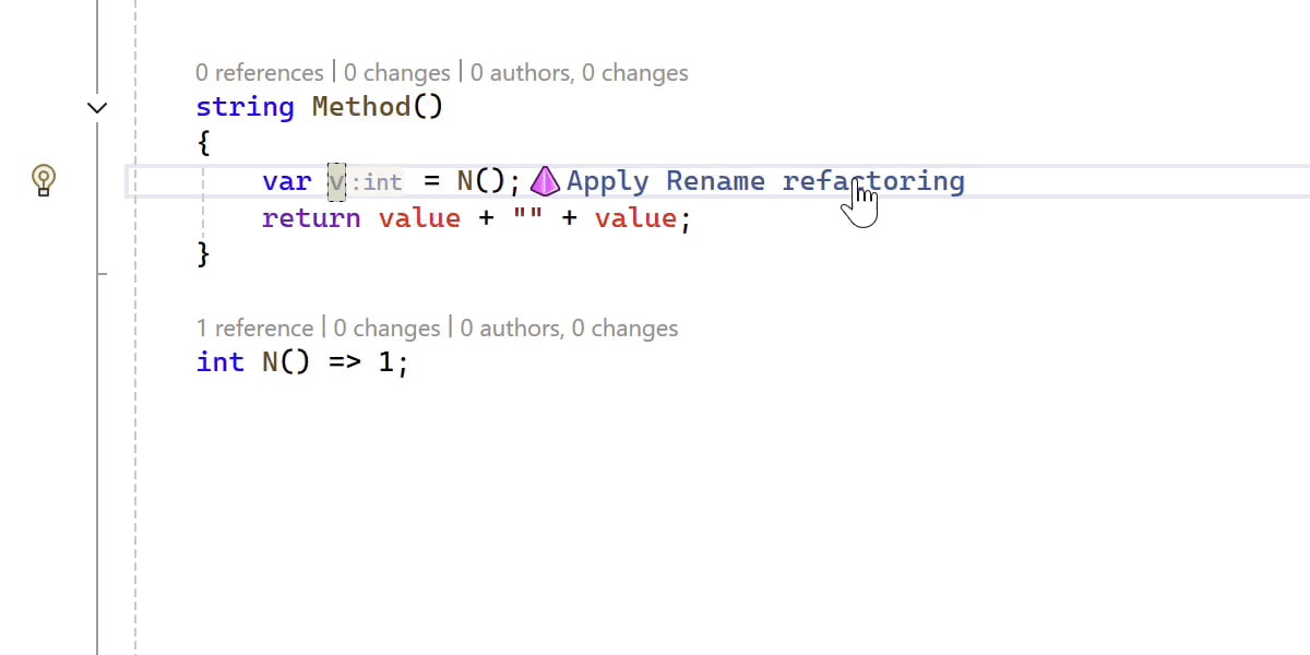 インプレースリファクタリングがインレイヒントに表示されるようになりました。これにより、リファクタリングが分かりやすくなり、JetBrains IDE との一貫性が確保されました。 インレイヒントの外観は、ReSharper | Settings(設定)| Environment(環境)| Editor(エディター)| Appearance(外観)で構成できます。