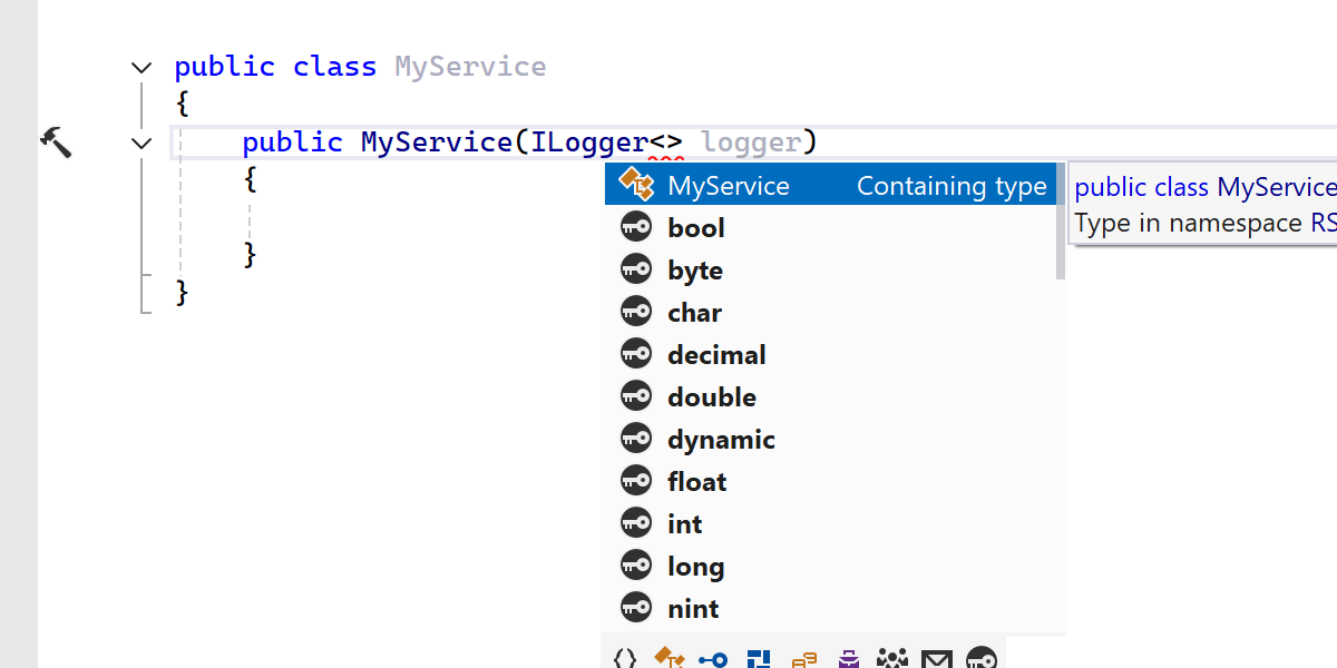 ILogger<T> のコード補完 ReSharper で ILogger<> を書く際、現在の型が山括弧内の補完候補として表示されるようになったため、準備時間を節約できるようになりました。