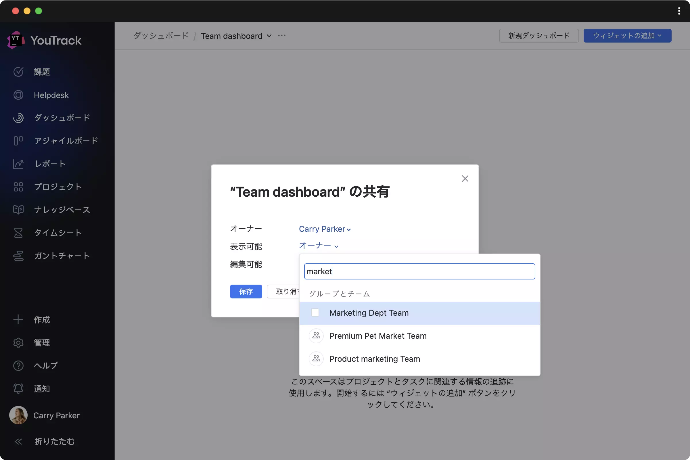 ダッシュボードの表示や編集の権限によって YouTrack のグローバル権限がオーバーライドされることはないため、ユーザーは通常 YouTrack を使用する際に利用可能な情報と課題のみを閲覧することができます。