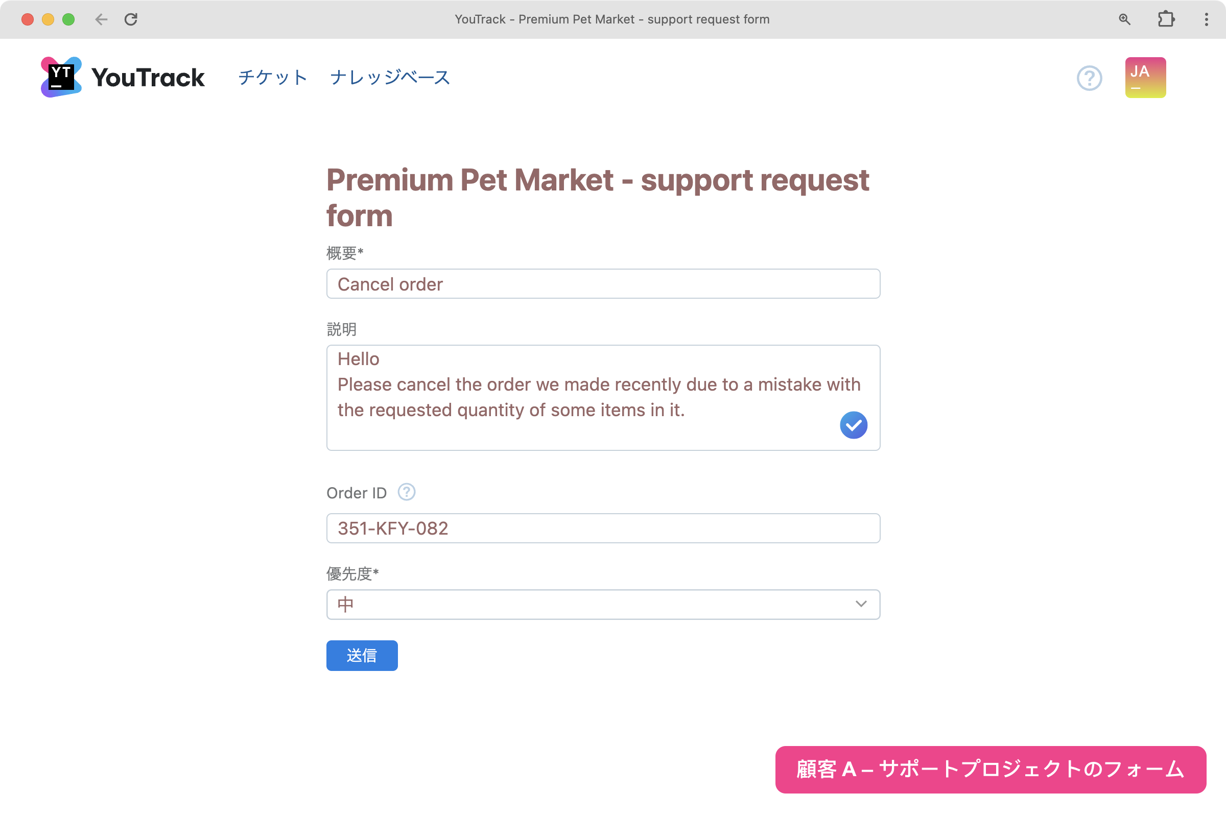 チケットが YouTrack で受け付けられると、チケット送信フォームまたはメールのトピックから概要が作成されます。 後で概要を簡単に理解し、レビューしやすくするため、サポート担当者がチケットの概要を編集できるようにしました。