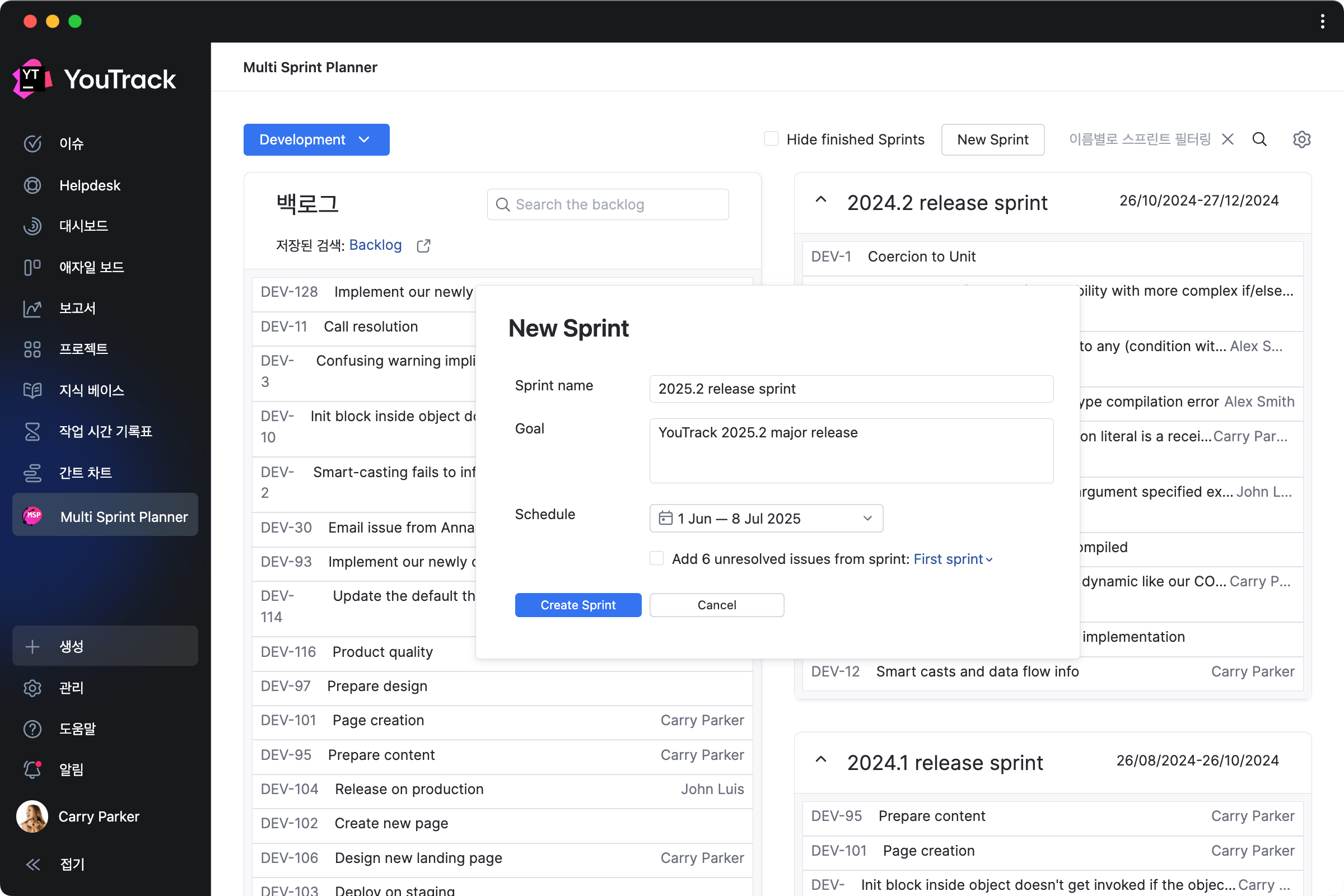 백로그 예측을 게임화하고 팀원 간 원활한 실시간 계획을 도와줍니다.