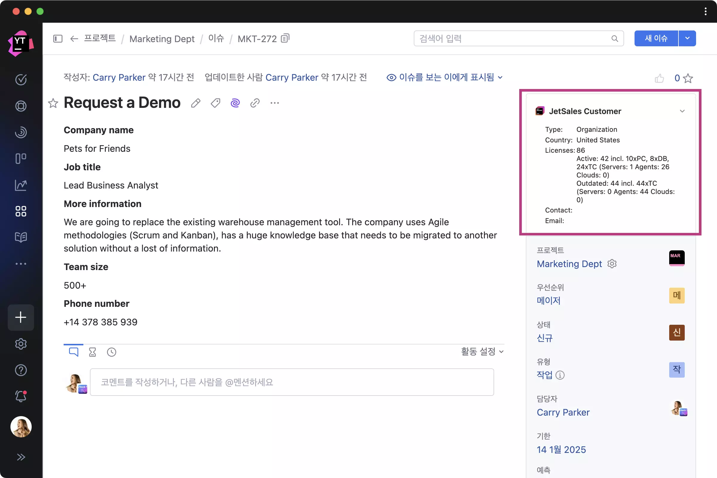 YouTrack 작업을 LegiSpace 시스템의 고객 프로필, 사례 및 문서에 연결합니다.