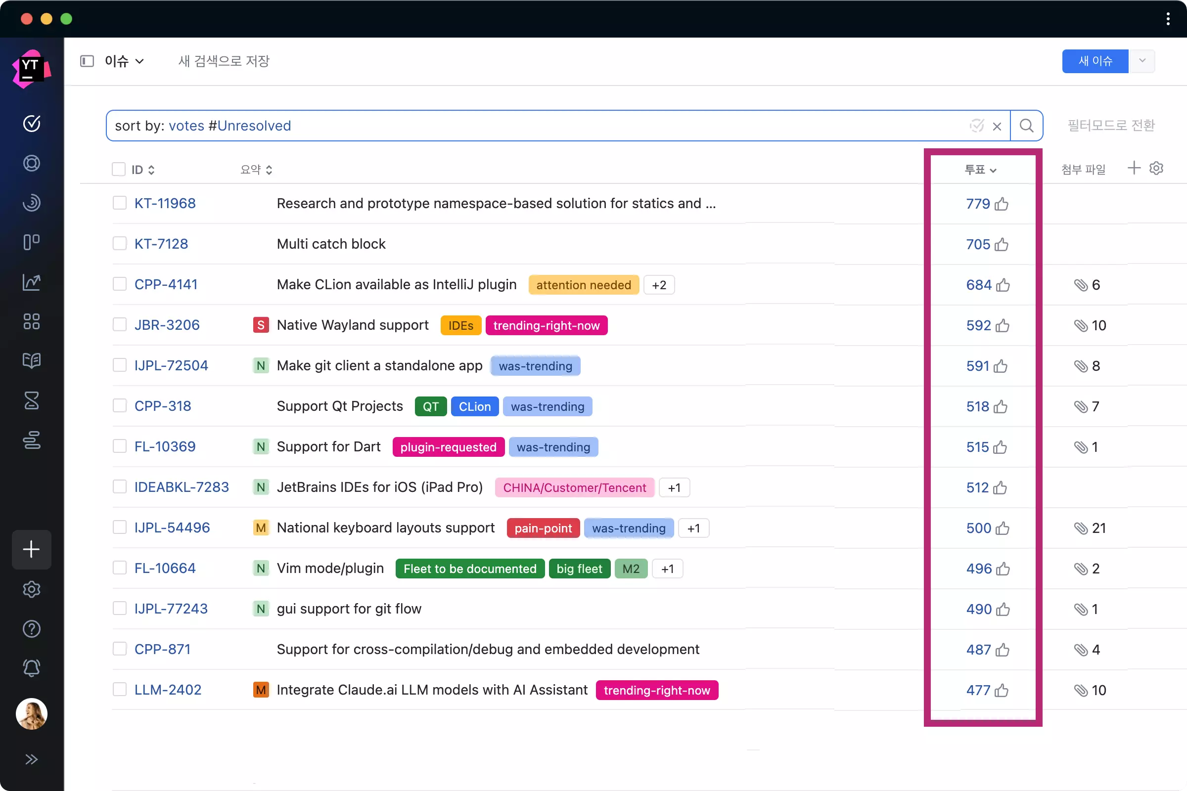 이슈에 투표하는 방식은 대기 중인 처리 작업의 우선순위를 정하고 향후 제품 및 서비스의 방향을 정하는 과정에 팀과 고객을 참여시키는 손쉬운 방법입니다.