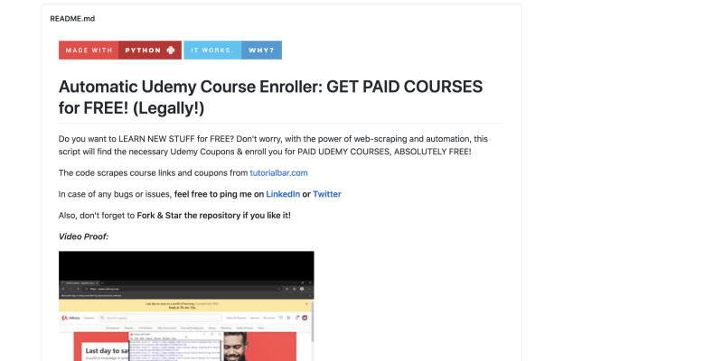 This script will find the necessary Udemy coupons and enroll you for paid Udemy courses, absolutely free.