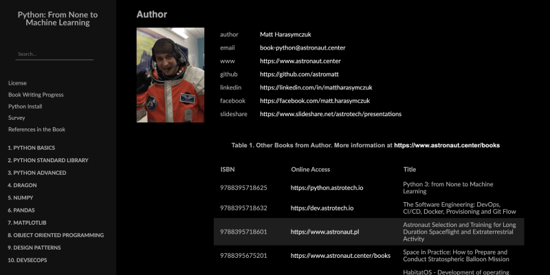 Free and open source book: "Python 3: from None to Machine Learning"; ISBN: 9788395718625; 1700+ A4 pages.