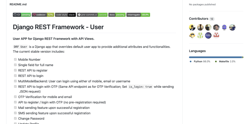 This Django app extends Django’s user model with additional fields and authentication APIs out of the box.