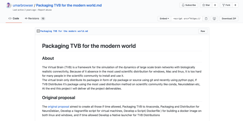 A project packaging the virtual brain (tvb) for the scientific community, using the most used scientific software distributors such as packaging tvb to anaconda.