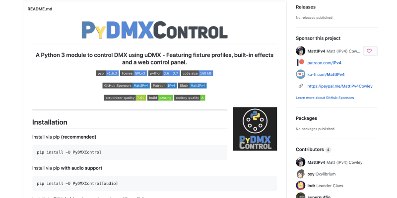 A Python 3 module to control DMX using uDMX. Featuring fixture profiles, built-in effects, and a web control panel.
