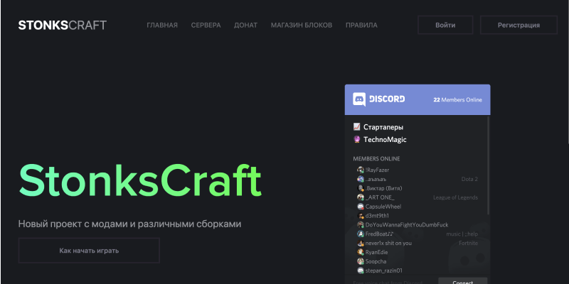 A site with a Minecraft server written on Django.