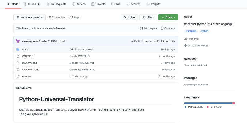 Universal Python transpiler