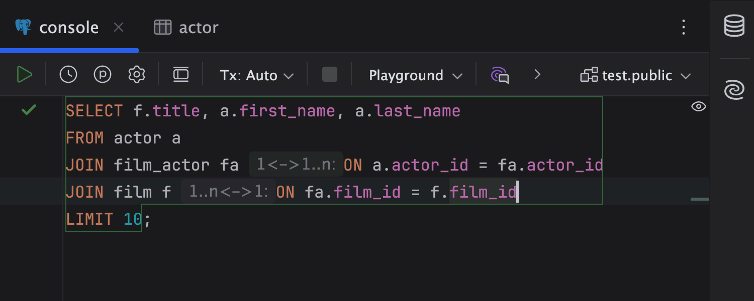 IntelliJ IDEA provides context-sensitive code completion, helping you write SQL queries faster.