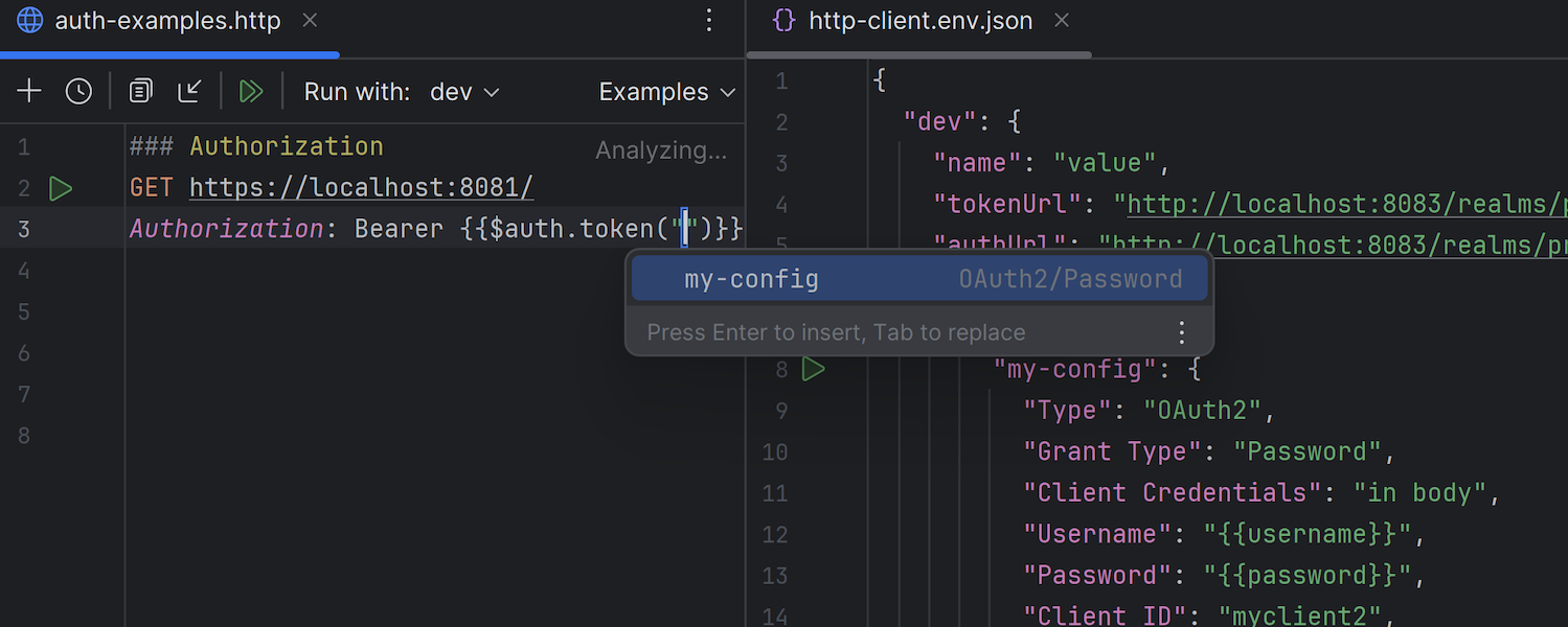 The HTTP Client supports OAuth 2.0, allowing you to get access tokens, send authorized requests to protected resources, and sign in without leaving the IDE.