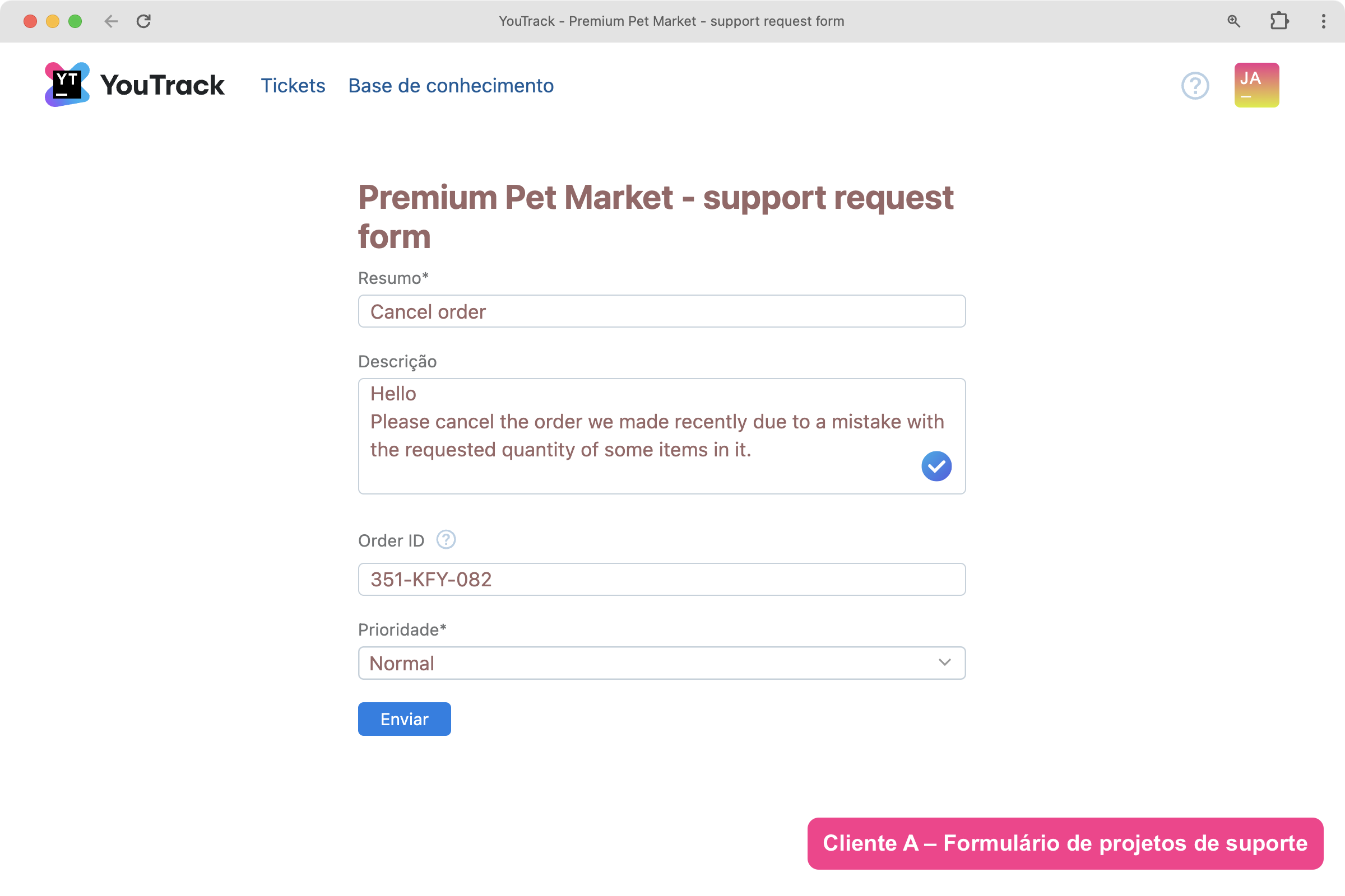 Quando um ticket é recebido no YouTrack, um resumo é criado usando o formulário de envio de ticket ou o tópico de e-mail. Os agentes agora podem editar o resumo do ticket para torná-lo mais compreensível e mais fácil de revisar em uma data posterior.