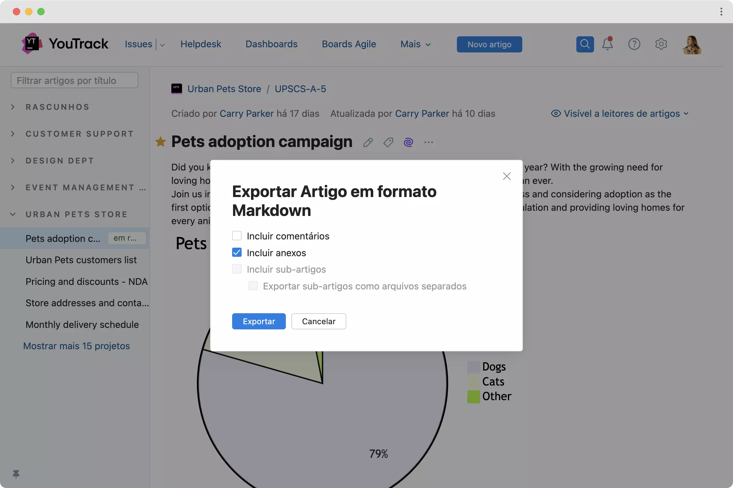 Uma nova opção permite exportar artigos na forma de arquivos Markdown. Isso facilita a transferência de conteúdo entre diferentes plataformas, aplicativos e sistemas sem perder formatação ou estrutura. Escolha se deseja exportar artigos individuais ou todos os seus subartigos, comentários e anexos.