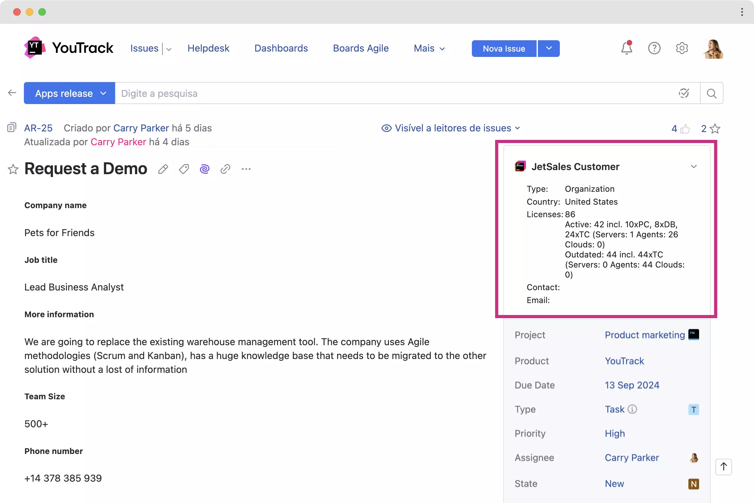 Se você estiver interessado em expandir os recursos do YouTrack para suas necessidades legais, entre em contato com a equipe da AgiLawyer para obter uma demonstração e veja como a personalização pode beneficiar você.