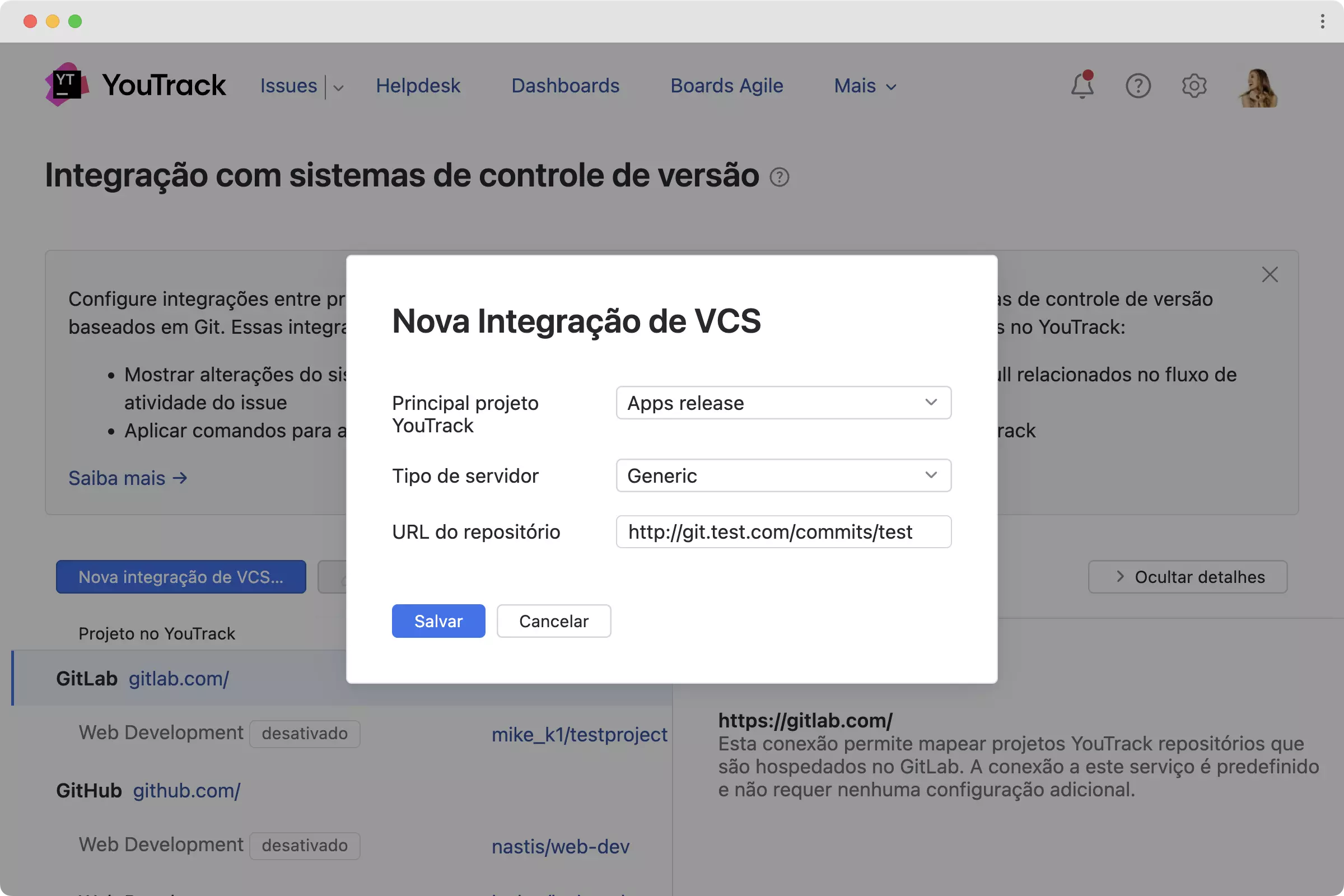 O YouTrack agora permite que você configure integrações com sistemas de controle de versão que não estão incluídos na nossa lista predefinida de serviços compatíveis. Isso permite que você anexe manualmente commits a issues no YouTrack ou adicione links de forma programática usando webhooks.
