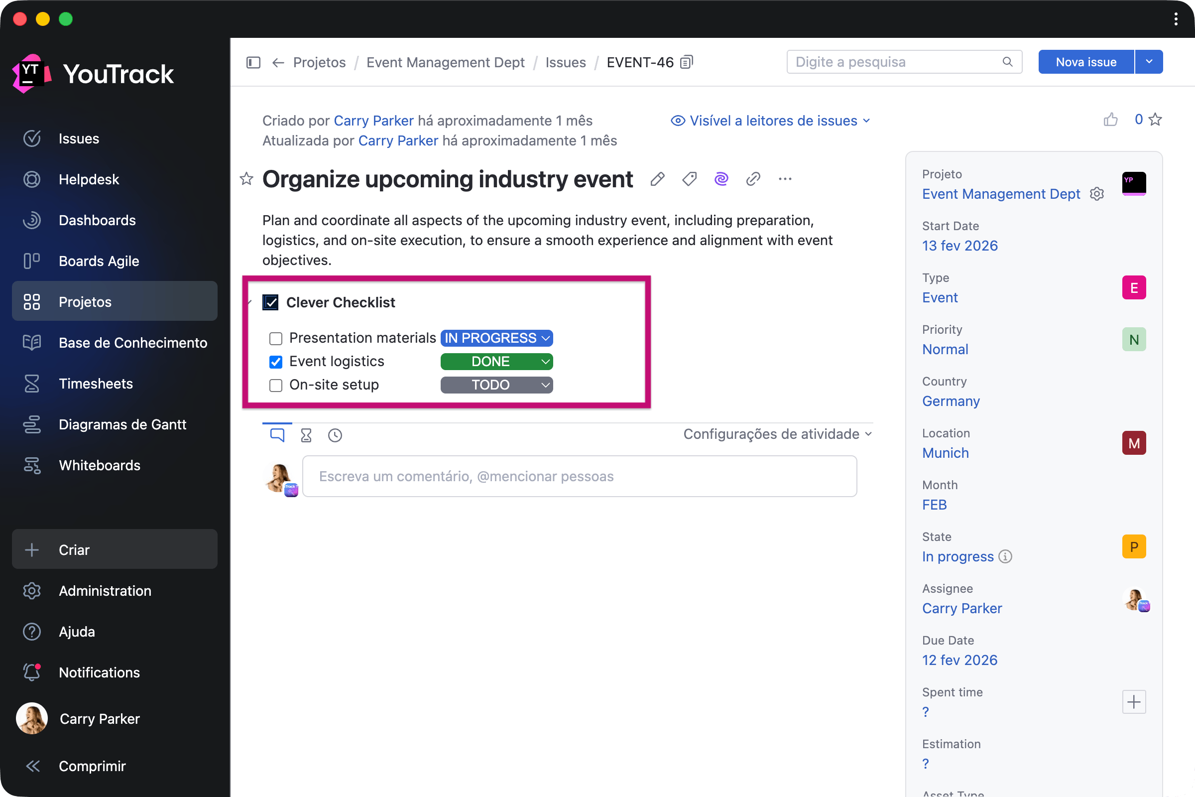 O ecossistema de aplicativos do YouTrack continua crescendo e já conta com 50 aplicativos no JetBrains Marketplace. Estes são alguns destaques para tornar a sua experiência com o YouTrack ainda melhor: