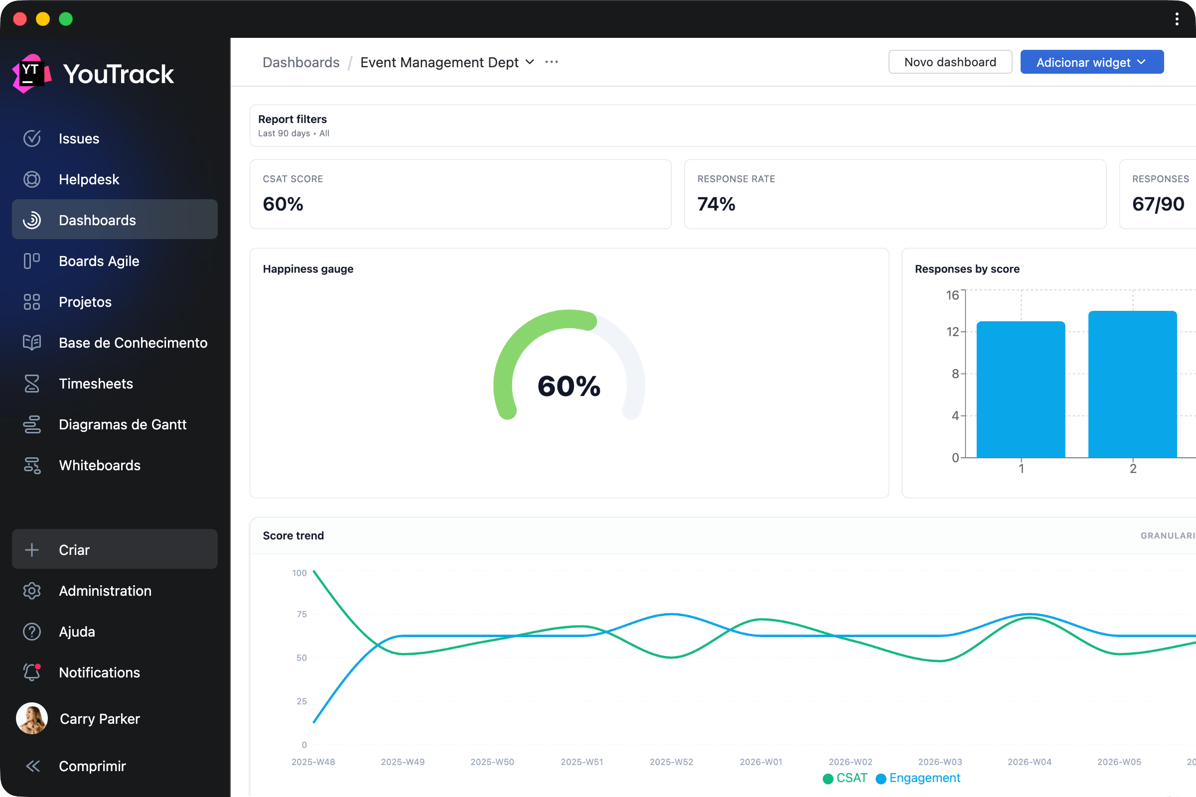 Este aplicativo pago permite que as equipes coletem feedback sobre a execução de tarefas, através de pesquisas automatizadas de satisfação do cliente (CSAT). Configure o fluxo das suas pesquisas personalizadas e revise a análise estatística das respostas diretamente no YouTrack.