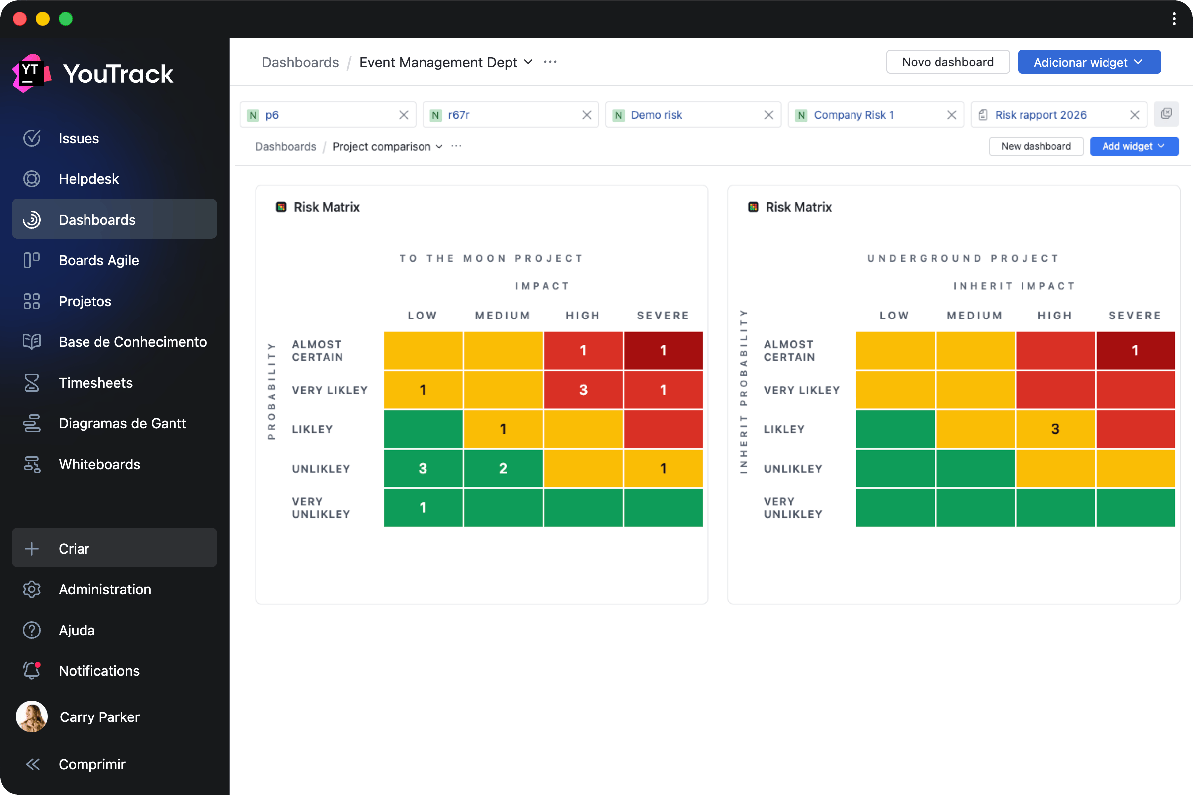Este aplicativo possibilita aos gerentes de projetos avaliarem os níveis de risco de um projeto, gerando widgets de matriz dinâmica de riscos, baseados na probabilidade e no impacto dos desfechos das tarefas.