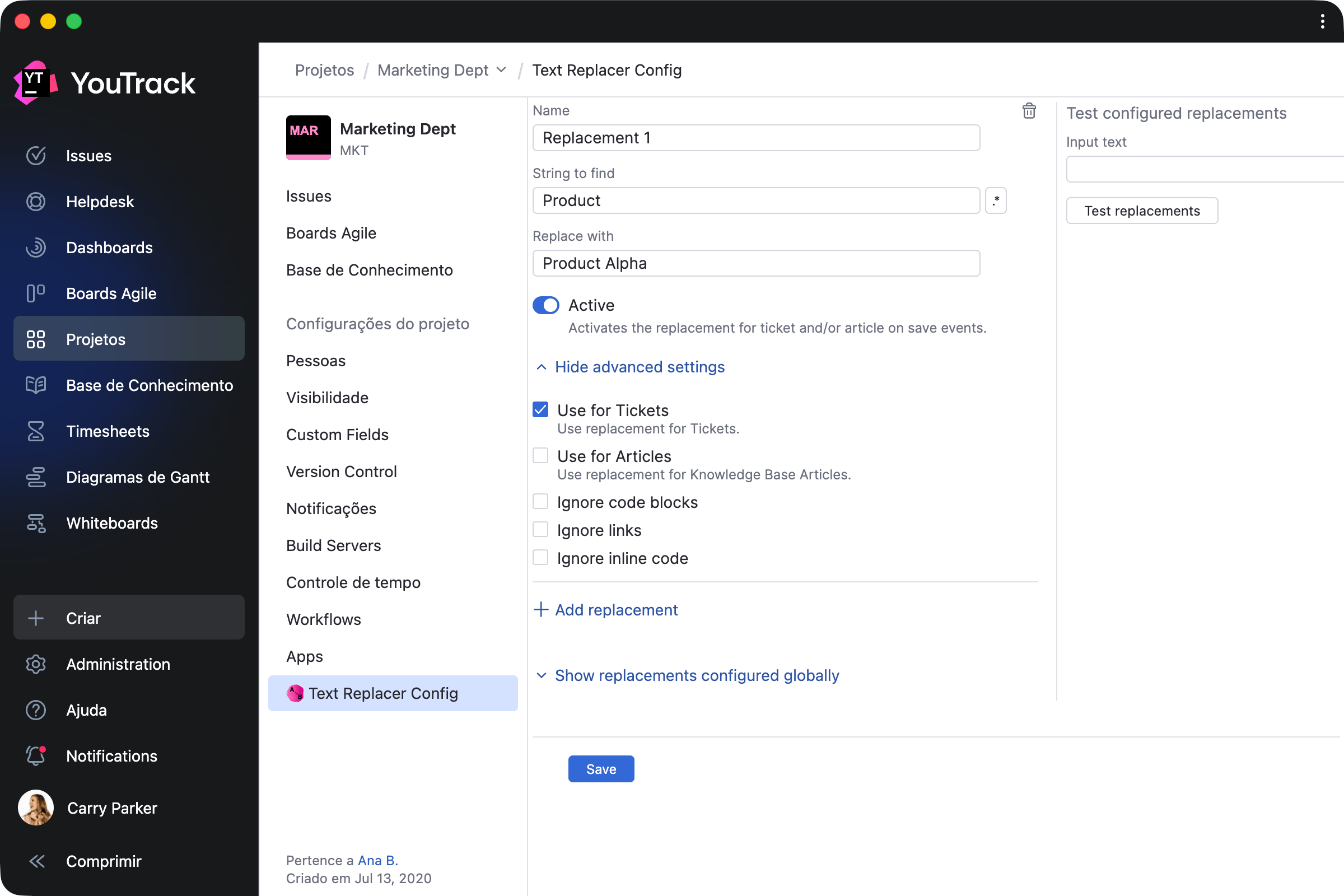 Este aplicativo permite atualizar conteúdo em todo o seu projeto, uma vez só ou de forma recorrente. Você pode usá-lo em tarefas e artigos para converter IDs externos de sistema em links, substituir texto com conteúdo pronto e muito mais.
