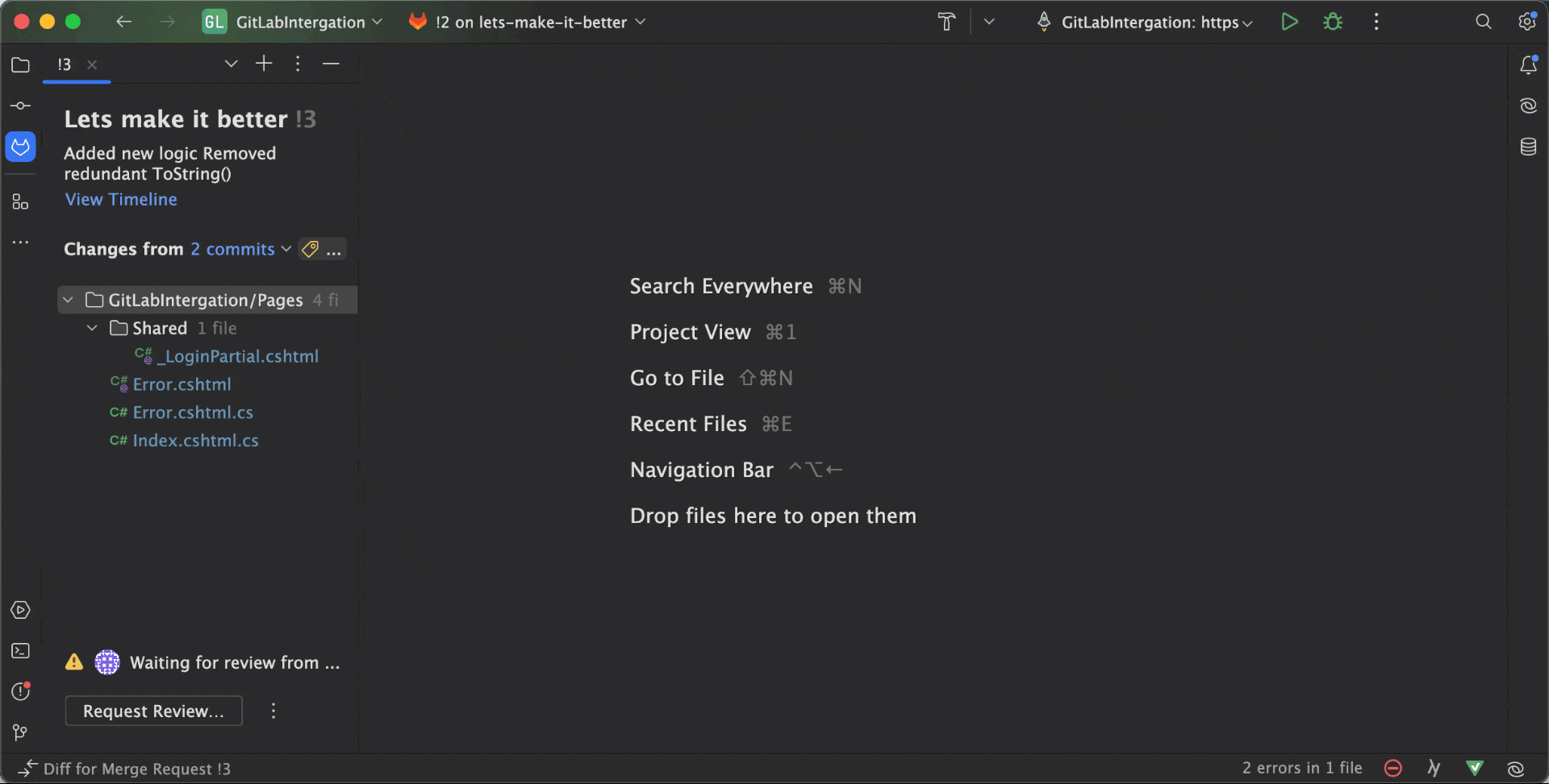 Rider 2023.3 introduces a revamped way to review changes. Now, instead of going through each file one by one, you can see all of the modified files from a changeset in a single, scrollable frame. This new diff viewer is compatible with GitLab, GitHub, and JetBrains Space reviews.